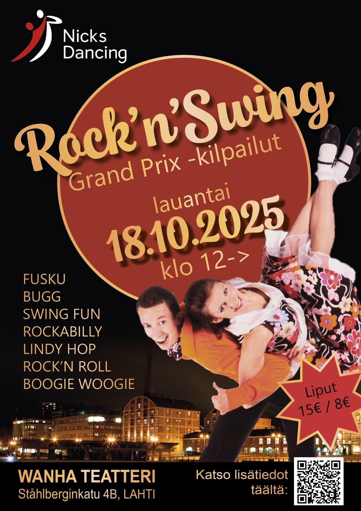 Tervetuloa Lahteen lauantaina 18.10.2025 Rock´n´swing-tanssien Grand Prix-kilpailuihin. Alkaen klo 12.00.