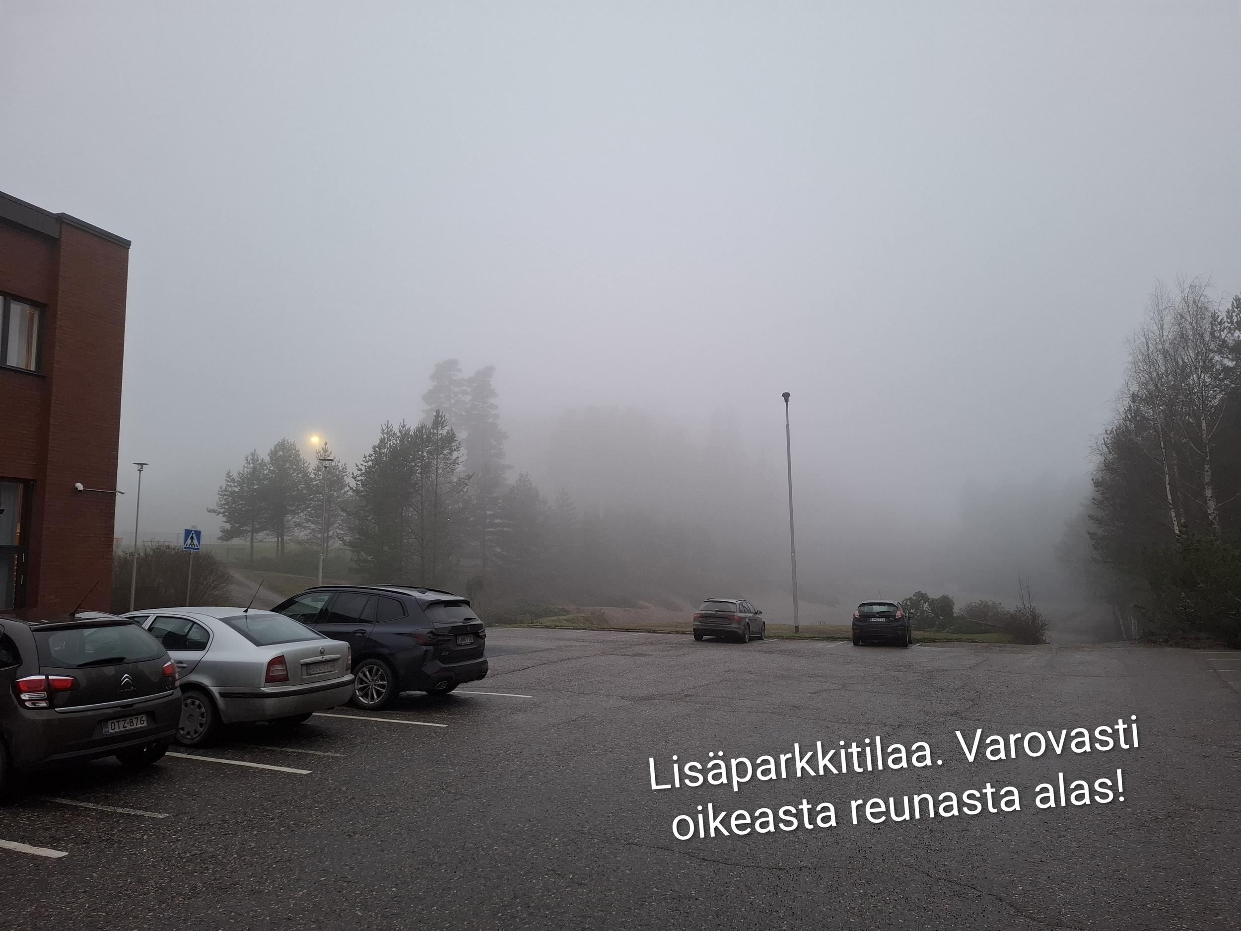 Liikuntahallin pihassa, samalla tasolla, josta sisäänkäynti kilpailuihin.